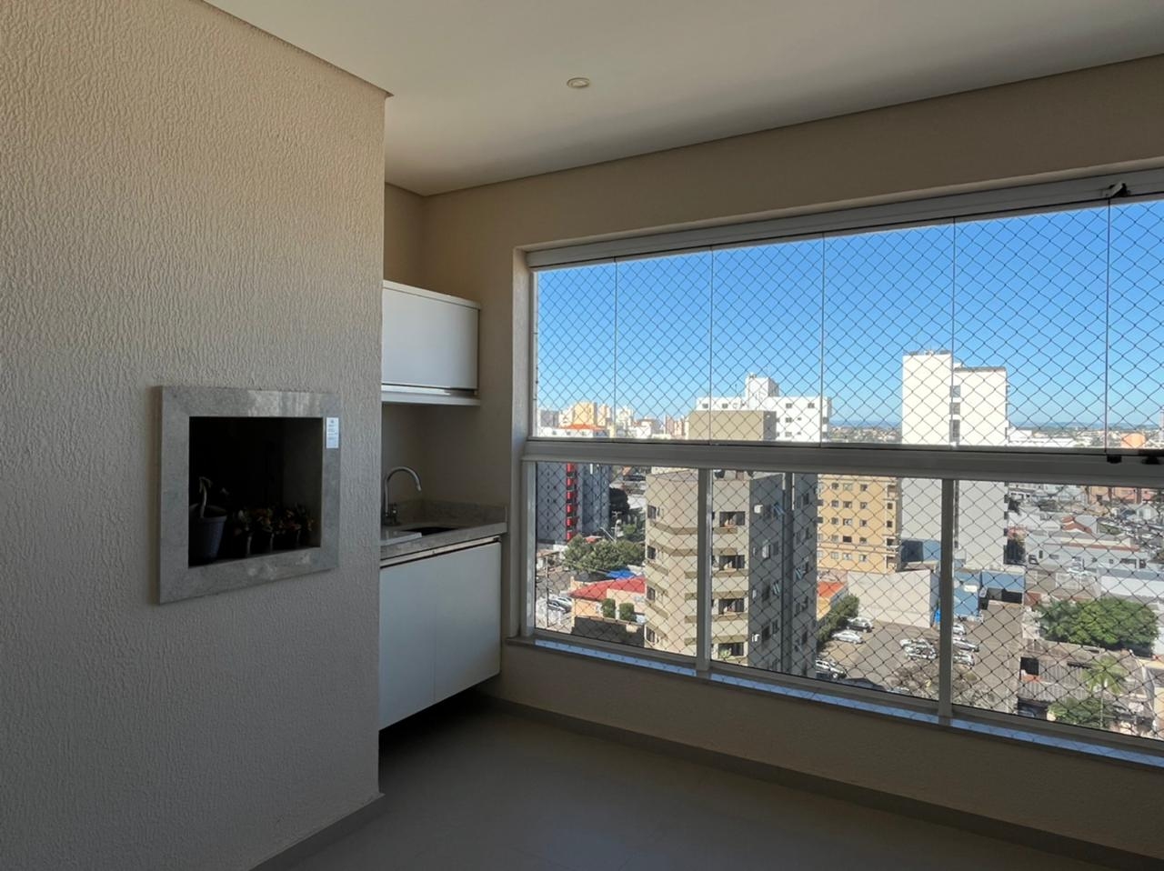 Sacada com churrasqueira e fechamento em screen glass;